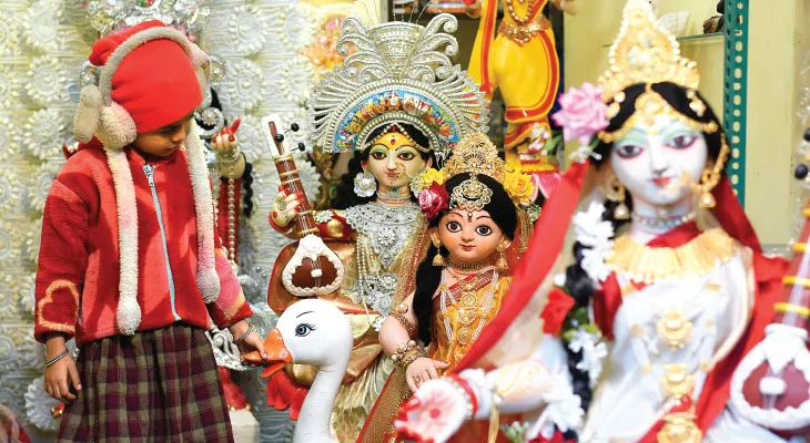 নিজস্ব প্রতিনিধি, কলকাতা: সরস্বতী ঠাকুর, ছোট্ট, বাচ্চা বাচ্চা, আর পাঁচটা শিশুর মতো অনাবিল, পবিত্র হাসি তার মুখে। সে দারুণ কিউট। এবছর কুমোরটুলিতে এই পুঁচকে সরস্বতীরই জয়জয়কার। ছোট ছোট হাতে তাঁকে নমস্কার জানাবে খুদেরা। ছোট্ট হাতে আশীর্বাদ করবেন কিউট সরস্বতী। তাঁকে ঘিরেই শিশুকণ্ঠে মন্ত্রোচ্চারণ, ‘সরস্বতী মহাভাগে বিদ্যে কমললোচনে। বিশ্বরূপে বিশালাক্ষি বিদ্যাং দেহি নমোহস্তু তে।’ হাতে আর কয়েকটি দিন মাত্র। ২৩ জানুয়ারি সরস্বতী পুজো।