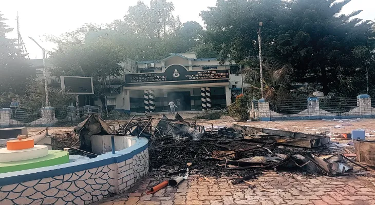 নিজস্ব প্রতিনিধি ও সংবাদদাতা: এসআইআরের ‘লজিকাল ডিসক্রিপেন্সি’ সংক্রান্ত হিয়ারিং পর্বে হয়রানির অভিযোগকে ঘিরে জেলায় জেলায় বিক্ষোভ তুমুল আকার ধারণ করছে। দক্ষিণ থেকে উত্তরবঙ্গ—রাজ্যের বিভিন্ন প্রান্তে বৃহস্পতিবার টায়ার জ্বালিয়ে পথ অবরোধ, ভাঙচুর, বিএলও’দের বিক্ষোভ-গণইস্তফার মতো একগুচ্ছ ঘটনা ঘটেছে। তবে সবকিছু ছাপিয়ে গিয়েছে উত্তর দিনাজপুর জেলার চাকুলিয়ায় এদিনের হিংসার ঘটনা। হিয়ারিংয়ের নামে সাধারণ মানুষকে হয়রান করা হচ্ছে, অভিযোগ সামনে রেখে উন্মত্ত জনতা স্থানীয় গোয়ালপোখর-২ বিডিও অফিসে চড়াও হয়ে যথেচ্ছ ভাঙচুর ও অগ্নিসংযোগ করে। তৃণমূল কংগ্রেসের অফিসে ঢুকে বিধায়ককে হেনস্তার পাশাপাশি ভাঙচুর চালানো হয়। আক্রমণ করা হয় পুলিশকে। পরিস্থিতি সামাল দিতে প্রথমে লাঠিচার্জ এবং পরে কাঁদানে গ্যাসের সেল ফাটায় পুলিশ। জনতার আক্রমণে চাকুলিয়া থানার আইসি রাজু সোনার সহ ৬ জন পুলিশ কর্মী জখম হয়েছেন। হাঙ্গামার অভিযোগে আটক করা হয়েছে ১০ জনকে। এলাকায় পুলিশ পিকেট বসানো হয়েছে। চলছে টহলদারি।