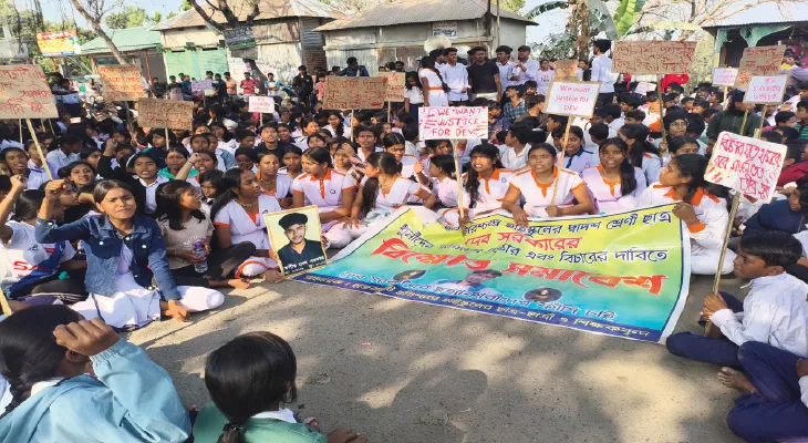 হাজরাহাট হরিশ্চন্দ্র হাইস্কুলের প্রধান শিক্ষক সুনীল বর্মন জানান, দেব ভালো ছেলে ছিল। পড়াশোনোতেও ছেলেটা ভালো ছিল। ওর মৃত্যুর ঘটনায় যারা জড়িত তাদের কঠোর শাস্তি হওয়া প্রয়োজন। মাথাভাঙা থানার আইসি হেমন্ত শর্মা বলেন, ছাত্রছাত্রীদের দাবি শুনেছি। আমরা সমস্ত অভিযুক্তকে ধরতে চেষ্টা চালাচ্ছি। ছাত্রকে লাথি মারার বিষয়টি খতিয়ে দেখব। • নিজস্ব চিত্র।