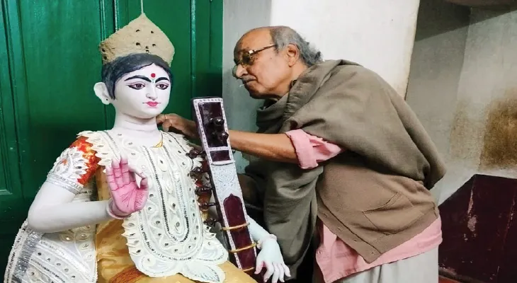 সুদীপ্ত কুণ্ডু, হাওড়া: এ যেন এক অন্যরকম বাগদেবীর বন্দনা, যেখানে ধর্মের ভেদরেখা মুছে গিয়ে জ্ঞান, সংস্কৃতি ও সম্প্রীতির এক অনন্য মিলনক্ষেত্র গড়ে ওঠে। সরস্বতীর অঞ্জলিতে এখানে একসঙ্গে হাত মেলান ভিন্ন ভিন্ন সম্প্রদায়ের মানুষ। শুধু উপাসনায় নয়, দেবীর প্রতিমা নির্মাণ থেকে শুরু করে ভোগের নৈবেদ্য পর্যন্ত, সবকিছুর মধ্যেই জড়িয়ে থাকে সর্বধর্মের অংশগ্রহণ। হাওড়ার বৃন্দাবন মল্লিক লেনের বাসিন্দা অবসরপ্রাপ্ত অধ্যাপক দীনেশকুমার খাঁয়ের বাড়ির সরস্বতী পুজো আক্ষরিক অর্থেই সর্বধর্ম সমন্বয়ের এক জীবন্ত নিদর্শন।