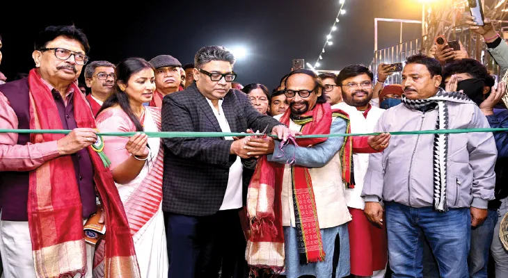 নিজস্ব প্রতিনিধি, বাঁকুড়া: শনিবার চতুর্থ বড়জোড়া উৎসব ও বইমেলার সূচনা হল। এদিন বিকেলে বড়জোড়া উচ্চ বিদ্যালয়ের ফুটবল ময়দানে ওই উৎসব শুরু হয়। উদ্বোধনী অনুষ্ঠানে রাজ্যের দুই মন্ত্রী ইন্দ্রনীল সেন ও অরূপ রায়, বিশিষ্ট সাহিত্যিক নলিনী বেরা, বাঁকুড়া জেলা পরিষদের পূর্ত কর্মাধ্যক্ষ অর্চিতা বিদ সহ অন্যান্যরা উপস্থিত ছিলেন। উৎসব ও বইমেলা কমিটির সভাপতি সুখেন বিদ বলেন, এবার আমাদের উৎসবের থিম ‘বাংলা ও বাঙালি’। বাংলার ঐতিহ্যকে আমরা উৎসবের মাধ্যমে তুলে ধরছি। বঙ্গের মনীষীদেরও নানাভাবে স্মরণ করা হচ্ছে। উৎসব প্রাঙ্গণে মোট ১৫০টি স্টল থাকছে। তারমধ্যে বিভিন্ন প্রকাশনী সংস্থার ৩০টি বুকস্টল রয়েছে।