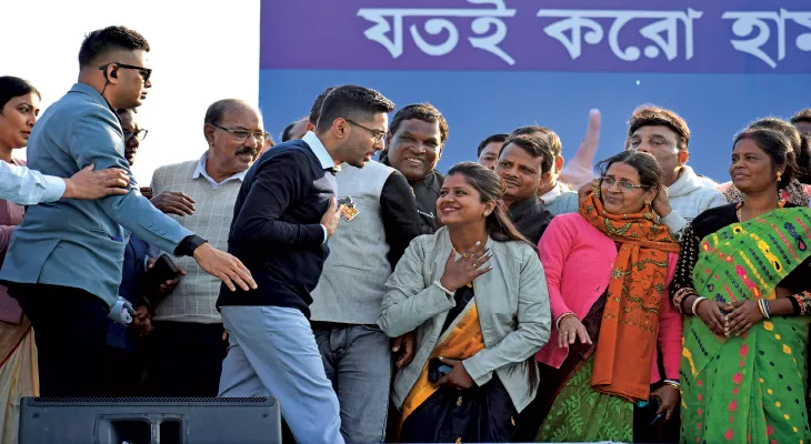 এদিন দুপুর আড়াইটা নাগাদ অভিষেক শালতোড়ার সভামঞ্চে পৌঁছন। তার অনেক আগে থেকেই কলেজ ময়দান ভরে যায়। আকাশে অভিষেকের হেলিকপ্টারটিকে চক্কর কাটতে দেখেই ভিড়ে ঠাসা ময়দান উল্লাসে ফেটে পড়ে। অভিষেক মঞ্চে উঠে হাত নেড়ে সকলকে অভিবাদন জানান। তিনি র্যাম্পে হেঁটে চারদিকের জনতার কাছাকাছি পৌঁছনোর চেষ্টা করেন। এদিনের সভায় বাঁকুড়ার সাংসদ তথা রাজ্য তৃণমূল নেতা অরূপ চক্রবর্তী সহ অন্যান্যরা উপস্থিত ছিলেন। সভামঞ্চে বাঁকুড়া পুরসভার নির্দল কাউন্সিলার দিলীপ আগরওয়াল ও শালতোড়ার বিজেপি নেতা কালিপদ রায় এদিন তৃণমূলে যোগ দেন।