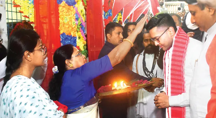 এদিন সড়ক পথে বনগাঁ থেকে ঠাকুরবাড়ি আসেন তৃণমূলের সর্বভারতীয় সাধারণ সম্পাদক। সম্প্রদায়ের রীতি মেনে গলায় গামছা পরিয়ে তাঁকে বরণ করে নেওয়া হয়। ঠাকুরবাড়ির মাটি ছুঁয়ে প্রথমেই হরিচাঁদ মন্দিরে যান তিনি। সেখানে পুজো দেন। এরপর পুজো দেন গুরুচাঁদ মন্দিরে। পরবর্তীতে বড়মার ঘরে আসেন। সেখানেই অভিষেককে বরণ করে নেন মমতা ঠাকুর। বড়মার মূর্তির সামনে প্রদীপ জ্বেলে প্রণাম করেন তৃণমূলের সেনাপতি। পায়ে ফুল দিয়ে প্রণাম করেন শান্তিমাতাদেবীকে। সেখানে উপস্থিত ছিলেন পবিত্র গোঁসাই। তিনি গামছায় ঠাকুরের ফুল দেন অভিষেক বন্দ্যোপাধ্যায়কে। মন্ত্রপাঠ করে গোঁসাই বলেন, ‘তুমি জিতে যাবে।’ ওই ফুল মাথায় ঠেকিয়ে প্রণাম করেন অভিষেক। তাঁকে কাছে পেয়ে ঠাকুরবাড়ি এবং মতুয়াদের উন্নয়নের বিষয়গুলি তুলে ধরেন গোঁসাইরা। এই বিষয়ে পবিত্র গোঁসাই বলেন, ‘আমরা তাঁর কাছে অনেক কিছু দাবি জানিয়েছি। তিনি পরে আমাদের ডেকে নেবেন বলেছেন।’