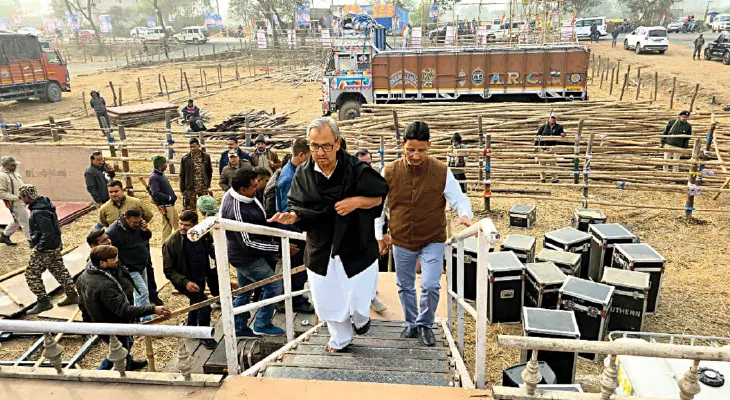 আসন্ন বিধানসভা নির্বাচনের আগে দলের সর্বভারতীয় সাধারণ সম্পাদকের জনসভা অত্যন্ত গুরুত্বপূর্ণ দলের নেতাকর্মীদের কাছে। নির্বাচনে বিরোধীদের মোকাবিলা করার পথ বাতলে দেবেন তিনি। সভার জন্য সুবিশাল মঞ্চ ও তার সামনে ২০০ ফুট বাই ১৫০ ফুটের র্যাম্প তৈরি হয়েছে। বক্তব্য চলাকালীন সহজেই যাতে কর্মী-সমর্থকদের মধ্যে পৌঁছতে পারেন সেজন্যই এই র্যাম্প বলে জানিয়েছেন আশিসবাবু। সভায় প্রায় পাঁচ লক্ষ মানুষ হাজির করানোর উদ্যোগ নিয়েছে দল। আজ বেলা ১২টার পর হেলিকপ্টারে চড়ে তিনি আসবেন তারাপীঠের চিলা মাঠে। সেখান থেকে তারাপীঠ মন্দিরে গিয়ে রাজ্যবাসীর মঙ্গল কামনায় পুজো দেবেন। সেখান থেকে সড়ক পথে রামপুরহাট মেডিকেলে আসবেন বাংলাদেশে পুশব্যাক হওয়া সোনালি বিবি ও তাঁর নবজাতককে শুভকামনা জানাতে। তারপর তিনি হাজির হবেন সভামঞ্চে। ইতিমধ্যে হাসপাতাল পরিষ্কার পরিচ্ছন্ন করে, প্রবেশ পথে লকিং ব্রিক বসানোর পাশাপাশি স্টিলের রেলিং দিয়ে ঘেরা হচ্ছে। মেডিকেল থেকে সভাস্থল পর্যন্ত জাতীয় সড়কের দু’ ধার বাঁশের ব্যারিকেড দিয়ে ঘিরে দেওয়া হচ্ছে। তারাপীঠ থেকে তাঁর সভাস্থলের যাত্রাপথের দু’ ধার ফ্লেক্স ও দলীয় পতাকায় মুড়ে ফেলা হয়েছে। টিআরডিএর উদ্যোগে গোটা তারাপীঠকে সাজিয়ে তোলা হয়েছে। প্রশাসনিক কর্তারা দফায় দফায় মন্দিরের নিরাপত্তা ব্যবস্থা খতিয়ে দেখে যান।