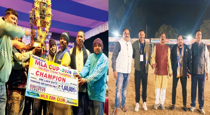শুক্রবার থেকে মহিষাদল রাজ ময়দানে দু’দিনের এমএলএ কাপ শুরু হয়েছে। ওইদিন রাতে ক্রিকেটের ফাইনাল দেখতে শীত উপেক্ষা করেই কয়েকহাজার মানুষ উপস্থিত ছিলেন। ফাইনালে মহিষাদলের দু’টি টিমের লড়াই দারুণ উপভোগ্য হয়েছে। ফাইনালে মহিষাদলের সানশাইন ক্লাব স্থানীয় পারজাত ক্লাবকে হারিয়ে চ্যাম্পিয়ন হয়েছে। সানশাইন ক্লাবকে পুরস্কারমূল্য ১লক্ষ ৬০হাজার টাকা এবং চ্যাম্পিয়নের ট্রফি দেওয়া হয়েছে। রানার্স দলকে ১লক্ষ ২০হাজার টাকা পুরস্কারমূল্য ও ট্রফি তুলে দেন বিধায়ক তিলক চক্রবর্তী। • নিজস্ব চিত্র