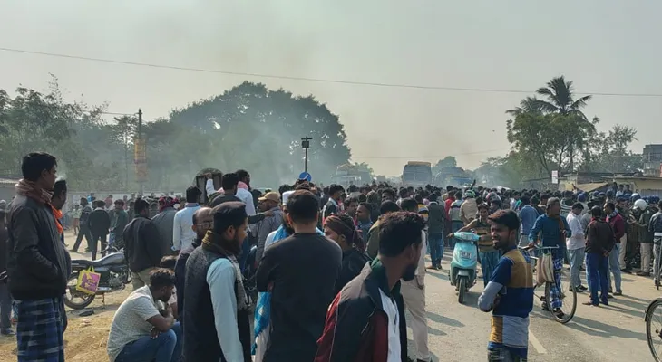 কলকাতা থেকে উত্তরবঙ্গ যাওয়ার প্রধান এই সড়কে গাড়ির যানজট শুরু হয়েছে। টায়ার জ্বালিয়ে ব্যাপক বিক্ষোভ চলছে। প্রায় দু’ঘণ্টা ধরে অবরুদ্ধ জাতীয় সড়ক। ব্যাপক যানজট শুরু হয়েছে। ট্রাক এবং গাড়ি ভাঙচুর শুরু করেছে উত্তেজিত জনতা। পাশাপাশি রেল অবরোধ করেছে বাসিন্দারা। লালগোলা থেকে শিয়ালদহ যাওয়ার ট্রেন আটকে রয়েছে। পাথর ছুড়ছে বিক্ষোভকারীরা। পরিস্থিতি নিয়ন্ত্রণের বাইরে। তবে জাতীয় সড়ক থেকে দেহ সরিয়ে নিয়েছে পুলিশ। বিক্ষোভকারীদের সঙ্গে পুলিশ কথা বলে পরিস্থিতি নিয়ন্ত্রণে আনার চেষ্টা করছে।
