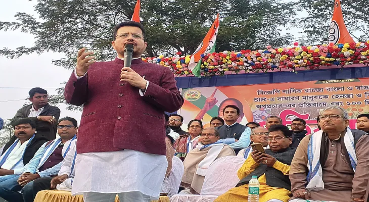 এদিনের সভায় শুরু থেকেই বিজেপিকে নিশানা করেন ঋতব্রত। কেন্দ্রীয় শিক্ষানীতি ও এসআইআর নিয়ে তিনি গেরুয়া শিবিরের কড়া সমালোচনা করেন। এসআইআর প্রসঙ্গে বলেন, এটা মানুষকে নাগরিকত্ব নিয়ে ভয় দেখানোর নতুন কৌশল। ভোটার তালিকা সংশোধনের নামে বিজেপি সাধারণ মানুষের নাম বাদ দেওয়ার ষড়যন্ত্র করছে। এসআইআরের মাধ্যমে রাজ্যে এনআরসি’র আতঙ্ক সৃষ্টি করছে তারা। এমন পরিস্থিতির কারণে আতঙ্কে অনেকে মারাও গিয়েছেন। জাতীয় শিক্ষানীতি নিয়েও ঋতব্রত সুর চড়ান। তিনি বলেন, কেন্দ্রের নতুন শিক্ষানীতি আসলে শিক্ষার গৈরিকীকরণ ছাড়া কিছু নয়। পাঠক্রম পাল্টে ইতিহাসের বিকৃতি ও মনীষীদের অবদান ছোট করার চেষ্টা করছে তারা। কেন্দ্রীয় সরকার রাজ্যের শিক্ষার জন্য বরাদ্দ টাকা আটকে রেখে বাংলার ছাত্রছাত্রীদের ভবিষ্যৎ নিয়ে ছিনিমিনি খেলছে। শনিবার ওই মাঠে বিজেপির ‘বিজয় সংকল্প সভা’ হয়। সেখানে গেরুয়া শিবিরের রাজ্য নেতা কালীপদ সেনগুপ্ত বলেছিলেন, ‘লক্ষ্মীর ভাণ্ডার প্রকল্পের সুবিধা নেওয়া মহিলাদের যেন ভোট দিতে না দেওয়া হয়। তাঁদের রুমে তালাবন্দি করে রেখে দিন। ভোট দিতে হলে বিজেপিকে দিতে হবে।’ সোমবার ওই মন্তব্যের প্রতিবাদে সরব হন তৃণমূলের জেলা সভাপতি অজিত মাইতি। তিনি বলেন, এসব তালিবানি ফতোয়া। বাংলার মহিলারা এসব কথায় কান দেবেন না। তাঁরা মমতা বন্দ্যোপাধ্যায়ের নেতৃত্বে বাংলার উন্নয়ন দেখেছেন।সুকান্ত মজুমদারের ‘বাঁশের মাথায় পেরেক’ লাগানোর মন্তব্যের জবাবে অজিতবাবু বলেন, বাঁশ আর পেরেক দিয়ে মানুষের মন জয় করা যায় না। উন্নয়নের মাধ্যমেই মমতা বন্দ্যোপাধ্যায় বাংলার মানুষের হৃদয়ে জায়গা করে নিয়েছেন। বিজেপি যদি ভেবে থাকে, তারা বাঁশ আর পেরেক দিয়ে বাংলার মানুষকে ভয় দেখাবে-তবে তারা ভুল ভাবছে।-নিজস্ব চিত্র