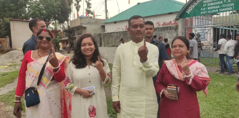 এদিকে, হান্টাপাড়া, টোটোপাড়া, গ্যারগেন্দা, তুলসীপাড়া ও বীরপাড়া এলাকা ছাড়া বিজেপির দলীয় প্রার্থীকে সেভাবে কোথাও চোখে পড়েনি। যদিও বার বার চেষ্টা করেও বিজেপি প্রার্থীকে ফোনে পাওয়া যায়নি। অন্যদিকে, কার্যত ভোটের ফাঁকা ময়দানে বাগানে বাগানে চুটিয়ে দিনভর ভোটের তদারকি করেন তৃণমূল প্রার্থী জয়প্রকাশ টোপ্পো। সকাল ৭টা নাগাদ ডিমডিমা টিজি প্রাইমারি স্কুলে নিজের ভোট দিয়ে গয়েরকাটা, বিন্নাগুড়ি, ডিমডিমা, মুজনাই, বান্দাপানি, ঢেকলাপাড়া, বীরপাড়া, লংকাপাড়া, তুলসীপাড়া সহ একের পর এক বাগানে চরকির মতো ঘোরেন তিনি। বাগানে বাগানে ঘুরে ঘুরে দলীয় কর্মী, সমর্থকদের ভোটের প্রয়োজনীয় নির্দেশ ও পরামর্শ দেন। দিনের শেষে তৃণমূল প্রার্থী জয়প্রকাশ বলেন, নতুন করে কিছু বলার নেই। বৃহস্পতিবারের ভোটের ছবি দেখার পর নিশ্চিত হয়ে গিয়েছি, উপনির্বাচনের মতো এবারও জিতছি। • পরিবারের সঙ্গে ভোট দিলেন মনোজ টিগ্গা।