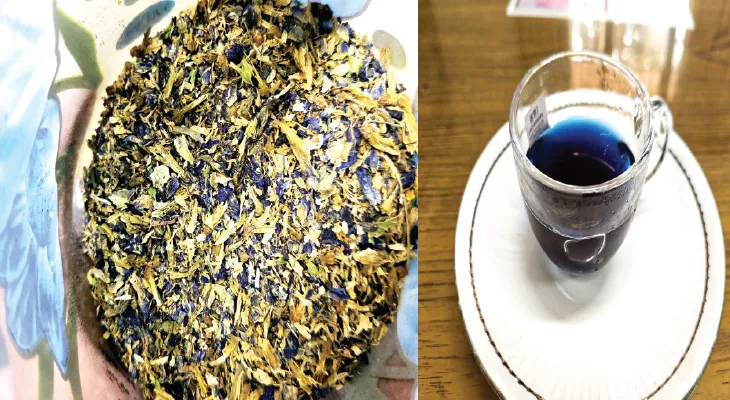 এমনিতে বাজারে বিক্রি হয় ব্লু টি। তবে স্বাদ বাড়াতে তাতে অনেক রকমের রাসায়নিক ও অন্যান্য পদার্থ মেশানো হয়। প্রশিক্ষণ কেন্দ্রের অধ্যাপকরা এই সাবধানবাণী দিচ্ছেন। তাঁরা যে পদ্ধতি অবলম্বন করছেন তাতে পাতার সঙ্গে কোনও কিছু মেশানো হয় না। ফলে পুরোটাই খাঁটি জিনিস। এই চা মধু দিয়ে পান করা যেতে পারে। এই পরীক্ষা করেছেন তিনজন অধ্যাপক। তাঁদের নাম সৌরেন্দ্রনাথ দাস, রানাপ্রতাপ চট্টরাজ এবং বিপ্লব পাল। নীল চায়ের গুণাগুণ সম্পর্কে তাঁরা জানান, এটি স্মৃতিশক্তি বাড়াতে সাহায্য করে। ডায়াবেটিক রোগীদের জন্য উপকারী। স্নায়ুরোগের ক্ষেত্রেও যথেষ্ট কার্যকরী। এই চায়ে প্রচুর পরিমাণ অ্যান্টি অক্সিডেন্ট আছে। অফিসে সারাদিন বহু মানুষ চা বা কফি পান করেন। তাতে থাকা ক্যাফিন শরীরের জন্য ভালো নয়। অন্যদিকে অপরাজিতা ফুলের ব্লু টিতে সেরকম ঝুঁকি নেই। তাই এই উপকারিতা বোঝাতে বিভিন্ন জায়গায় প্রচার করতে চাইছে তিন অধ্যাপক। কৃষকদের পাশাপাশি সাধারণ মানুষও এই চা বাড়িতে বানাতে পারবেন। তবে অবশ্যই বাগান তাঁদের করতে হবে। তা হলেই সুস্বাদু এবং উপকারী এবং ক্ষতিকারক নয় ব্লু টি মিলবে রোজ, কাপেগরম। নিজস্ব চিত্র