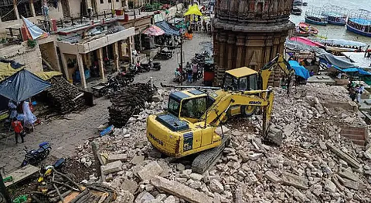 বারাণসী: সৌন্দর্যায়ন ও সংস্কার! তার জন্য ভেঙে ফেলা হল বারাণসীর ঐতিহ্যবাহী মণিকর্ণিকা ঘাটের একাংশ। এই নিয়ে রীতিমতো শোরগোল পড়ে গিয়েছে প্রধানমন্ত্রী নরেন্দ্র মোদির লোকসভা কেন্দ্রে। শুধু বিরোধীরাই নয়, প্রতিবাদে সরব একাধিক হিন্দুত্ববাদী সংগঠনও। বিগত বেশ কিছুদিন ধরেই সংস্কার চলছে মণিকর্ণিকা ঘাটে। অভিযোগ, এই কাজে ৩০০ বছর পুরনো মন্দির মাটিতে মিশিয়ে দেওয়া হয়েছে। ভেঙে ফেলা হয়েছে মারাঠা রাজমাতা অহল্যাবাঈ হোলকরের শতাব্দী প্রাচীন মূর্তিও। বিষয়টি নিয়ে তুমুল ক্ষোভ তৈরি হয়েছে। তারপরই নড়েচড়ে বসেছে স্থানীয় প্রশাসন। ইতিমধ্যেই তদন্তের নির্দেশ দিয়েছে জেলা প্রশাসন। বারাণসীর জেলাশাসক সত্যেন্দ্র কুমার জানিয়েছেন, কাজ শেষ হলে সমস্ত কাঠামো পুনর্নির্মাণ করে মূর্তিগুলিকে যথাযথ সম্মান দিয়ে বসিয়ে দেওয়া হবে।