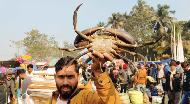 নিজস্ব প্রতিনিধি, চুঁচুড়া ও সংবাদদাতা, উলুবেড়িয়া: উলুবেড়িয়ার মেলায় বিক্রি হচ্ছে রয়্যাল বেঙ্গল কাঁকড়া। এক-একটি কাঁকড়ার ওজন ১ কেজিরও বেশি। দাম ২ হাজার থেকে ৩ হাজার টাকা। উদয়নারায়ণপুরের সিংটি গ্রামে হচ্ছে এই কাঁকড়া মেলা। বৃহস্পতিবার সকাল থেকে মেলায় মানুষের ঢল। আবার মাছের মেলা ঘিরে জমজমাট হুগলির ব্যান্ডেলের কৃষ্ণপুর। ৫১৯ বছর ধরে এই মেলা হচ্ছে বলে দাবি স্থানীয় বাসিন্দাদের। চলতি বছর একটি ৫০ কেজির শঙ্কর মাছ এবং একটি রাশিয়ান রুই মাছ মেলায় আনা হয়েছিল। তা দেখতে ভিড় জমিয়েছিল জনতা।
