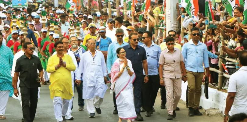 বর্ধমানের দুপুরের আকাশে চক্কর কাটতে কাটতে সবে মাটি ছুঁয়েছে মমতার হেলিকপ্টার। আর তখনই বাধাভাঙা উচ্ছ্বাস জনতার। সমস্বরে আওয়াজ উঠছে—‘যতই করো হামলা, আবার জিতবে বাংলা’। স্পন্দন স্টেডিয়াম থেকে হাঁটতে হাঁটতে বেরিয়ে এলেন তৃণমূল সুপ্রিমো মমতা বন্দ্যোপাধ্যায়। তিনি তখন যেন জার্মানির সেই হ্যামিলন শহরের বাঁশিওয়ালা! নেত্রী হেঁটে চলেছেন। পিছনে ঝাঁকে ঝাঁকে মানুষ। তিনি আসবেন শুনে প্রায় দেড় ঘন্টা আগে থেকেই কড়া রোদের মধ্যে ঠায় দাঁড়িয়েছিলেন সবাই। আসতেই তাঁদের চোখ-মুখ থেকে ক্লান্তির ছাপ উধাও। কে কত কাছে থেকে ‘দিদি’কে দেখতে পারে, তার প্রতিযোগিতা শুরু হয়ে যায়। সামলাতে হিমশিম খেতে হয় নিরাপত্তারক্ষীদের। এর মধ্যেই কেউ সুযোগ ফুলের তোড়া বাড়িয়ে দেন। সাদরে তা গ্রহণও করেন মমতা। যুবক-যুবতীদের আবার ঝোঁক দিদির সঙ্গে একটা সেলফি তোলার। কেউ সুযোগ পেলেন। কেউ পেলেন না। অনেকে সোশ্যাল মিডিয়ায় তৃণমূল সুপ্রিমোর পদযাত্রা লাইভও করলেন। কমেন্ট বক্সেও উঠল ঝড়।