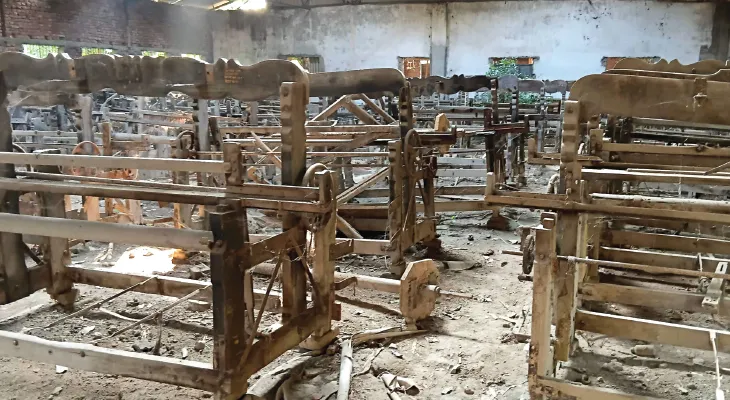 সংবাদদাতা, কাটোয়া: পনেরো বছর ধরে বন্ধ হয়ে পড়ে রয়েছে কেতুগ্রামের উদ্ধারণপুরের তাঁত সমবায়। তাঁত শ্রমিকরা কাজ হারিয়েছেন। এক সময়ে এখানকার তাঁতের শাড়ির কদর ছিল। সে সব সোনালী দিন আজ অতীত। বিশাল কারখানা পড়ে পড়ে নষ্ট হচ্ছে। কারখানাগুলি থেকে হাপিশ হচ্ছে যন্ত্রাংশ। বেদখল হচ্ছে জায়গা। ঝোপ জঙ্গলে ভরে গিয়েছে সমবায়ের ভবন, কারখানা। সমবায় পুনুরুজ্জীবিত করার দাবি তুলছেন স্থানীয়রা।