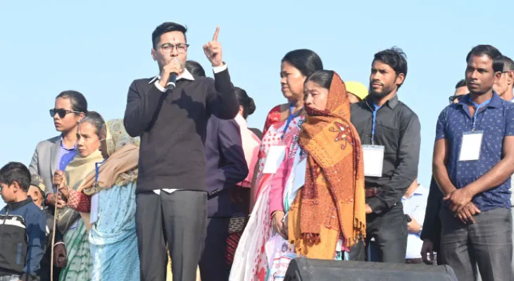 বিজেপির ইন্ধনে এসআইআর পর্বে সাধারণ মানুষকে হেনস্তা করার অভিযোগ বারবার করছেন তৃণমূল সুপ্রিমো মমতা বন্দ্যোপাধ্যায় ও অভিষেক। সেই হেনস্তার উদাহরণ স্বরূপ এদিন মঞ্চে অভিষেক হাজির করিয়েছিলেন এমন ১০ জন জীবিত মানুষকে, যাঁদের মৃত বলে ঘোষণা করা হয়েছে কমিশনের খসড়া তালিকায়। এসআইআর পর্বে ভোটারই হোক বা বিএলও, আতঙ্ক আর কাজের চাপে যাঁদের মৃত্যু হয়েছে, তাঁদের পরিবারের সদস্যদেরও মঞ্চে উপস্থাপিত করেন অভিষেক। ভূমিপুত্র রাজবংশীদের ভোট পেতে বীর চিলা রায়ের নামে প্যারা মিলিটারি ট্রেনিং সেন্টার এবং নারায়ণী ব্যাটালিয়ন গঠনের মতো বিস্তর প্রতিশ্রুতি বিগত নির্বাচন পর্বে বারবার বিলি করেছে বিজেপি। যার একটিও আজও পূরণ হয়নি। বিজেপির প্রতিশ্রুতির ফানুস যে ফুটো হয়েছে, তা মনে করিয়ে দেন অভিষেক।