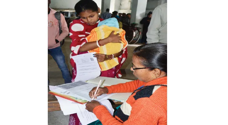 অগত্যা এই ঠান্ডার মধ্যে দেড় মাসের শিশুকে চাদরমুড়ি দিয়ে কোলে নিয়ে লাইনে দাঁড়িয়েছেন তিনি। বধূর স্বামী পুষ্পজিত মণ্ডল বলেন, ‘এটা এমন একটা বিষয়, অবহেলা করা যাবে না। আবার এত ছোটো বাচ্চা নিয়ে দীর্ঘক্ষণ অপেক্ষা করাও কঠিন। কিন্তু কোনও উপায় নেই, তাই হাজার সমস্যা হলেও লাইনে দাঁড়িয়েছি।’