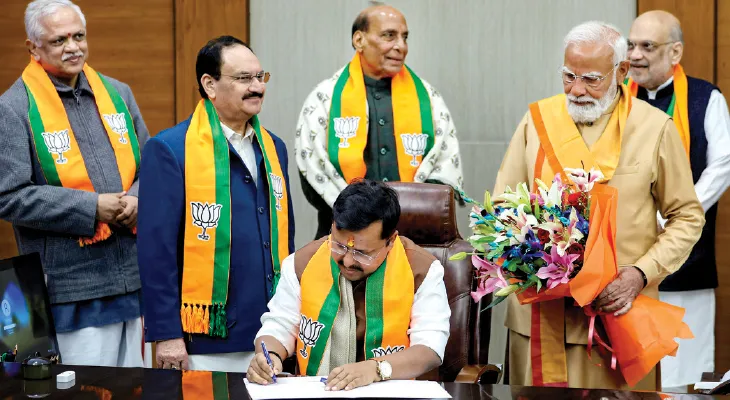 মঙ্গলবার বিজেপির কেন্দ্রীয় কার্যালয়ে দলের ১২তম সর্বভারতীয় সভাপতি হিসেবে আনুষ্ঠানিকভাবে নীতিন নবীনের নাম ঘোষণা করে দল। মাসকয়েকের মধ্যেই বাংলা সহ একাধিক রাজ্যে গুরুত্বপূর্ণ বিধানসভা ভোট রয়েছে। কিন্তু এদিনের ভাষণে ভোটমুখী রাজ্যগুলির মধ্যে শুধুমাত্র কেরলের উল্লেখ করেছেন প্রধানমন্ত্রী। বাংলার প্রসঙ্গে বলেছেন, বাংলা এবং তেলেঙ্গানায় বিজেপি শক্তিশালী হয়েছে। মঙ্গলবার নীতিন নবীনও কোনও ভোটমুখী রাজ্যেই আলাদাভাবে জয়ের দাবি করেননি। শুধুমাত্র প্রতিটি রাজ্যে বিজেপিকে শক্তিশালী করার বার্তা দিয়েছেন। তবে এদিন অনুপ্রবেশ প্রসঙ্গে কড়া বার্তাই দিয়েছেন প্রধানমন্ত্রী। বলেছেন, অনুপ্রবেশকারীরা দেশের জন্য নিরাপদ নয়। এদের চিহ্নিত করে যথাযথ পদক্ষেপ নিতে হবে। কিছু রাজনৈতিক দল ভোটব্যাংকের স্বার্থে অনুপ্রবেশকারীদের পাশে দাঁড়াচ্ছে। তাদের মুখোশ খুলে দিতে হবে।