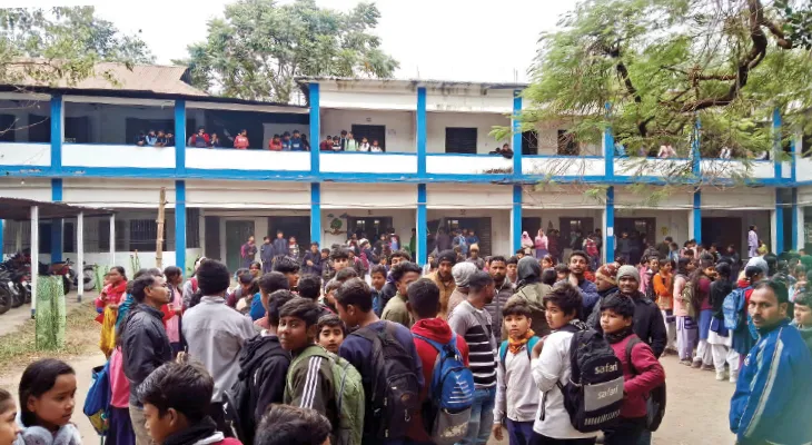 • গড়ালবাড়ি হাইস্কুলে বিক্ষোভ। - নিজস্ব চিত্র।