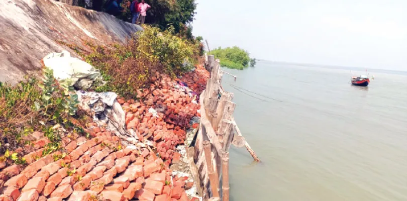 সংবাদদাতা, কাকদ্বীপ: দীর্ঘদিন ধরে ভাঙা অবস্থায় পড়ে রয়েছে নামখানার হরিপুর এলাকার তেঁতুলঘাটে নদীবাঁধের প্রায় ৪০০ মিটার অংশ। এদিকে আর কিছুদিন পরেই আসবে বর্ষাকাল। তখন কী হবে, এই ভেবে উদ্বেগে রয়েছেন এই এলাকার বাসিন্দারা। জানা গিয়েছে, প্রায় ৩৫ বছর আগে সপ্তমুখী নদীর এই বাঁধের নীচের অংশটি ইট বিছিয়ে তৈরি করা হয়েছিল। তার উপরে ফেলা হয়েছিল মাটি। এরপর কেটে গিয়েছে বহু বছর। অতীতে প্রাকৃতিক বিপর্যয়ের সময় প্রায় চারবার এই নদীবাঁধটি ভেঙেছে। তখন সব মিলিয়ে এই এলাকার কয়েক হাজার বাসিন্দা ক্ষতিগ্রস্ত হয়েছিলেন। তড়িঘড়ি মাটি ফেলে অস্থায়ীভাবে বাঁধটির মেরামতি করা হয়েছিল। গ্রামবাসীদের অভিযোগ, মাঝেমধ্যে এই নদীবাঁধে কয়েক ঝুড়ি করে মাটি ফেলা হয়েছে। কিন্তু স্থায়ীভাবে বাঁধ মেরামতির কোনো পরিকল্পনা নেওয়া হয়নি।