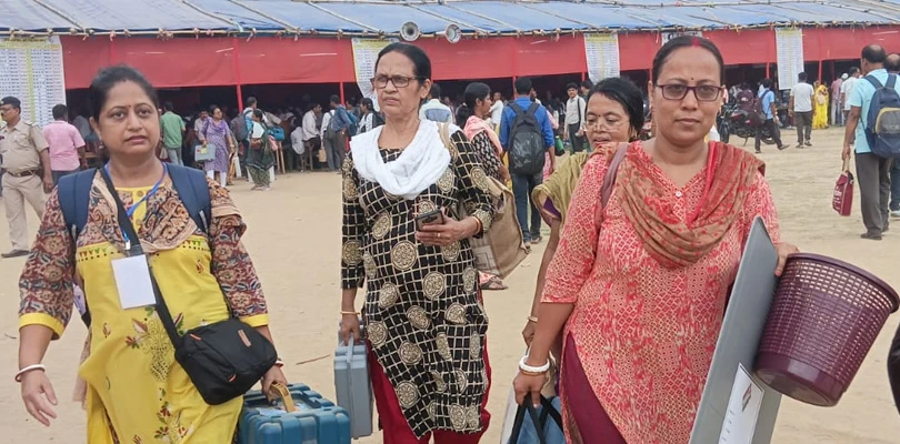 কাটোয়ায় বুথের পথে ভোট কর্মীরা