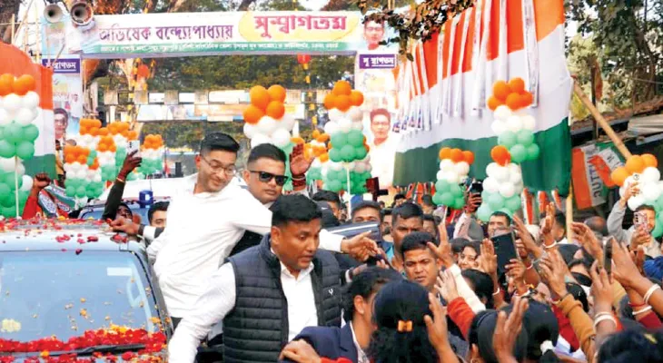বনগাঁর কিষাণ মান্ডির মাঠে অস্থায়ী হেলিপ্যাডে নামে অভিষেকের কপ্টার। বনগাঁ থেকে ঠাকুরনগর পর্যন্ত রাস্তার দু’ধারে হাজার হাজার মানুষ দাঁড়িয়ে তাঁকে স্বাগত জানান। বিকেল সাড়ে ৪টে নাগাদ ঠাকুরবাড়িতে পৌঁছন অভিষেক। সেখানে মমতা ঠাকুর ও তাঁর মেয়ে মধুপর্ণা ঠাকুর তাঁকে বরণ করে নেন। অভিষেক পুজো দেন হরিচাঁদ ও গুরুচাঁদ মন্দিরে। পরে যান বড়মা বীণাপাণি ঠাকুরের মন্দিরে। দু’পক্ষের দু’জন গোঁসাই ছিলেন অভিষেকের পুজো দেওয়ার পর্ব সুসমাধা করার জন্য। একজন শান্তনু ঘনিষ্ঠ গোঁসাই বিকাশ কীর্তনীয়া। অন্যজন তৃণমূলের ভজহরি রায়।