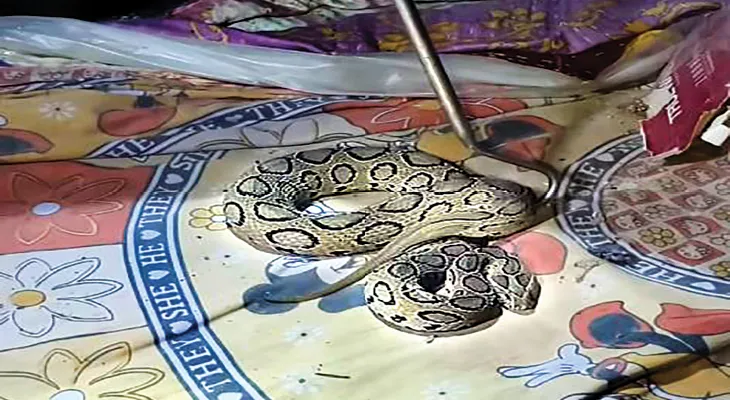 সংবাদদাতা, ঘাটাল: রাতের নিকষ অন্ধকার কেটে তখন সবে ভোরের আলো ফুটতে শুরু করেছে। নিজের বিছানায় অঘোরে ঘুমোচ্ছেন শ্যামসুন্দরবাবু। আচমকাই প্রেসার কুকারের হুইসেলের মতো শব্দে তাঁর ঘুম ভেঙে গেল। তারপর পাশ ফিরে ঘুম চোখে তাকাতেই চক্ষু চরকগাছ। মশারির ভেতরেই বালিশের হাতখানেক দূরত্বে কুণ্ডলী পাকিয়ে বসে রয়েছে সাক্ষাৎ মৃত্যু! বিছানার মধ্যে একটি চন্দ্রবোড়াকে দেখে শরীরের রক্ত একেবারে হিম হওয়ার জোগাড়। বিছানায় মশারির নিরাপদ আশ্রয়ে অকাতরে ঘুমিয়ে থাকা শ্যামসুন্দরবাবু জানতেনই না রবিবার গোটা রাত ওই সাপটিকে নিয়েই কাটিয়েছেন তিনি। চন্দ্রকোণা থানার সীতাশোল গ্রামের বাসিন্দা শ্যামসুন্দর সাঁতরা বলেন, জানতাম না চন্দ্রবোড়া কুকারের হুইসেলের মতো শব্দ করতে পারে। তাই একদম শিয়রের কাছে সাক্ষাৎ যমদূত দেখেও সন্তর্পণে বিছানা থেকে নেমে ঘর থেকে বেরিয়ে কোনওমতে প্রাণে বাঁচি। এরপর বন দপ্তরে খবর দেওয়া হলে উদ্ধারকারী দলের সদস্য মলয় ঘোষ এসে সাপটি নিয়ে যান। এদিকে চন্দ্রবোড়ার মতো বিষাক্ত সাপের সঙ্গে অজান্তেই রাত কাটিয়ে গোটা সীতাশোল গ্রামে যেন হিরোর মর্যাদা পাচ্ছেন শ্যামসুন্দরবাবু। বন দপ্তর সূত্রে জানা গিয়েছে, চন্দ্রবোড়া বা রাসেলস ভাইপার ভারতের অন্যতম বিষধর সাপ। যে স্বভাবে অত্যন্ত হিংস্র। এরা সাধারণত মানুষের উপস্থিতি টের পেলেই পালিয়ে যাওয়ার বদলে শরীরকে স্প্রিংয়ের মতো গুটিয়ে নিয়ে সজোরে হিস হিস শব্দ করে সাবধান করতে থাকে। ওই শব্দ অনেকটা কুকারের সিটি বা হুইসেলের মতো শোনায়। এদের আক্রমণ করার গতি এতই দ্রুত যে মানুষ চোখের পলক ফেলার আগেই এরা ছোবল বসিয়ে দিতে পারে। চন্দ্রবোড়ার বিষ মূলত রক্তকণিকা ও টিস্যুকে ধ্বংস করে দেয়, যার ফলে আক্রান্ত স্থানে পচন ধরা থেকে শুরু করে কিডনি বিকল পর্যন্ত হতে পারে। সাপ উদ্ধারকীরা দলের সদস্য মলয়বাবু বলেন, চন্দ্রবোড়া অন্যান্য সাপের মতো শান্ত নয়, বরং বিপদে পড়লে অত্যন্ত হিংস্র হয়ে উঠে। শ্যামসুন্দরবাবুর ক্ষেত্রেও তেমনটা ঘটার সম্ভাবনা ছিল প্রবল।