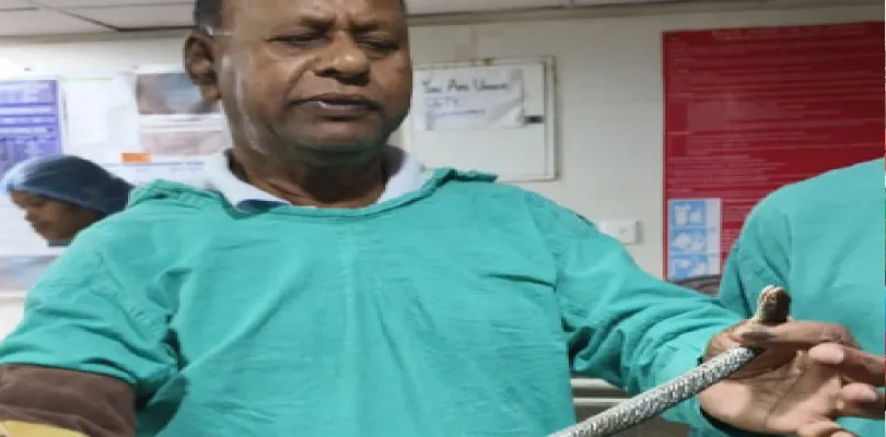 সংবাদদাতা, ফালাকাটা: ফালাকাটা সুপার স্পেশালিটি হাসপাতালের অপারেশন থিয়েটার থেকে সাপ উদ্ধারের ঘটনায় সোমবার চাঞ্চল্য ছড়িয়ে পড়ে হাসপাতাল চত্বরে। ওটি’তে কালো রঙের একটি সাপ দেখতে পেয়ে শল্য চিকিৎসক, নার্স সহ অন্যান্য স্বাস্থ্যকর্মীদের মধ্যে আতঙ্ক ছড়িয়ে পড়ে। ঘটনার পর খবর দেওয়া হয় স্থানীয় সাপ উদ্ধারকারী শংকর সাহা চৌধুরী ও তাঁর টিমকে। তিনি দ্রুত ঘটনাস্থলে পৌঁছে হাসপাতালের অ্যাপ্রন গায়ে চাপিয়ে ওটি রুমে গিয়ে সাপটি উদ্ধার করেন নিয়ে আসেন।