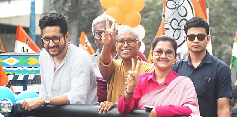 মধ্যমগ্রামে তৃণমূলের হেভিওয়েট প্রার্থী রথীন ঘোষের সমর্থনে বিকেলে বাদু রোডের দিগবেড়িয়া খেলার মাঠ থেকে হয় বর্ণাঢ্য মিছিল। রোদ সত্ত্বেও জমজাট ভিড়। হুডখোলা গাড়িতে টেলিভিশনের জনপ্রিয় মুখ দিদি নম্বর ওয়ান খ্যাত রচনা বন্দ্যোপাধ্যায়, সঙ্গে অভিনেতা পরমব্রত চট্টোপাধ্যায়। তাঁদের একঝলক দেখার জন্য রাস্তার দু’ধারে উপচে পড়া ভিড়। বিশেষ করে মহিলাদের উপস্থিতি ছিল নজরকাড়া। অনেকের হাতেই লক্ষ্মীর ভাণ্ডারের প্রতীক। রাজ্যের জনকল্যাণমূলক প্রকল্পের সরাসরি রাজনৈতিক বার্তা দিলেন প্রচারে থাকা কর্মীরা। ঢাকের বাজনা, ব্যান্ডের তালে এগিয়েছে মিছিল। মাঝেমধ্যেই গাড়ি থামিয়ে হাতজোড় করে পথচলতি মানুষ ও স্থানীয়দের ভোটের আবেদন জানিয়েছেন রথীন ঘোষ। তাঁর পাশে রুপোলি পর্দার দুই তারকা। হাসি, হাত নাড়া, আর সংক্ষিপ্ত বক্তব্য রাখেন তাঁরা। তৃণমূলের মহিলা সংগঠন থেকে যুব শাখা, সবমিলিয়ে হাজার হাজার কর্মীর উপস্থিতিতে কার্যত উৎসবের আবহ এলাকাজুড়ে।