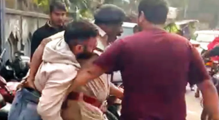 বিধাননগর দক্ষিণ থানার একটি খোরপোশ সংক্রান্ত মামলাকে কেন্দ্র করে ঘটনার সূত্রপাত। জানা গিয়েছে, আদালতের নির্দেশ থাকা সত্ত্বেও অভিযুক্ত যুবক দীর্ঘদিন তাঁর প্রাক্তন স্ত্রীকে খোরপোশের টাকা দেননি। সেই কারণে তাঁর বিরুদ্ধে গ্রেপ্তারি পরোয়ানা জারি হয়। মঙ্গলবার তিনি আগাম জামিনের আবেদন জানাতে বারাসত জেলা আদালতে হাজির হন। সঙ্গে ছিলেন কলকাতার আইনজীবীরা। অভিযোগ, ওই যুবক আদালতে আসার খবর পেয়ে বিধাননগর দক্ষিণ থানার পুলিশ আদালত চত্বরে পৌঁছে যায়। অভিযুক্ত আদালতের কাছাকাছি আসতেই তাঁকে পাকড়াও করতে যায় পুলিশ। তখন তাঁর আইনজীবীরা দাবি করেন, আদালতের দ্বারস্থ হওয়া অভিযুক্তকে আদালত চত্বর থেকে গ্রেপ্তার করা উচিত নয়। আদালতই স্থির করবে, অভিযুক্ত জামিন পাবেন, নাকি হেপাজতে যাবেন। পুলিশের এই তৎপরতাকে বিচারব্যবস্থার পরিসরে হস্তক্ষেপ বলেও মনে করেন তাঁরা। এনিয়েই বেধে যায় দু’পক্ষের তুলকালাম। আদালত চত্বরে ছড়িয়ে পড়ে উত্তেজনা। শেষ পর্যন্ত আইনজীবীদের ‘প্রভাবে’ পিছু হটে পুলিশ।