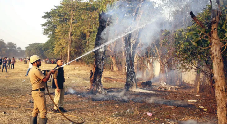 জানা গিয়েছে, এদিন একটি গ্রুপ ছবি তোলার জন্য কায়দা করে গাছের পাতায় আগুন লাগানো হয়। সেই আগুনই ছড়িয়ে পড়ে আশপাশের গাছে। যারা আগুন লাগিয়েছিল, পরিস্থিতি বেগতিক বুঝে তারা সরে পড়ে। যাঁরা ময়দানে খেলাধুলো করছিলেন, তাঁরাই পুলিশে খবর দেন। খবর পেয়ে ঘটনাস্থলে আসে দমকল। পুলিশ জানতে পেরেছে, এদিন একটা গ্রুপ ফটোশ্যুট করছিল। সেই সময় কিছু একটা স্প্রে করে তারা গাছের পাতায় আগুন ধরায়। সেই আগুনই আচমকা ছড়িয়ে পড়ে। দমকলের তৎপরতায় দ্রুত আগুন নেভানো গেলেও তিন-চারটি গাছ পুড়ে গিয়েছে বলে অভিযোগ। ঘটনার তদন্ত শুরু করেছে পুলিশ। আগুন নেভাচ্ছে দমকল। - নিজস্ব চিত্র