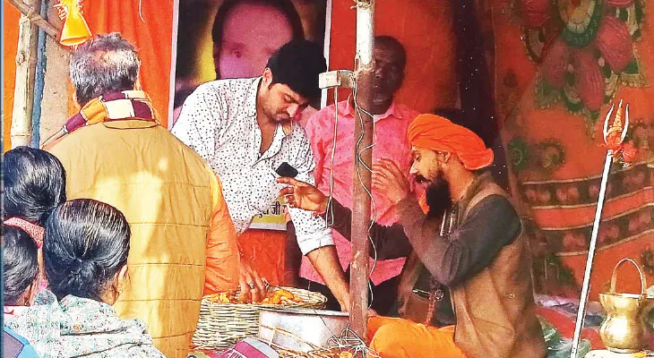 যেখানে ধর্মীয় মেলা বসে, সেখানেই চলে যান তিনি। গত পনেরো বছর ধরে দেশের বিভিন্ন ধর্মস্থান ঘুরে বেড়িয়েছেন। তবে গঙ্গাসাগরে এই প্রথম এসেছেন ‘পকোড়া বাবা’। এদিন সাধুবাবা যেখানে বসে প্রসাদ বিলি করছিলেন, ঠিক তাঁর পিছনেই বসে নাগাড়ে পকোড়া ভাজচ্ছিলেন তাঁর কয়েকজন সঙ্গী। তাঁরাও এসেছেন উত্তরপ্রদেশ থেকে। একটু বেলা বাড়তেই সাধুদের ডেরায় দেখা গেল না বাবাকে। দেখা মিলল মেলা প্রাঙ্গণের আরেক প্রান্তে। তাঁকে ঘিরে বড়সড় জটলা। সেখানে বসেও পকোড়া বিলি করে চলেছেন তিনি। কোনও ভক্তই খালি হাতে ফিরছেন না। হাত পাতলেই মিলছে গরমা-গরম পকোড়া।