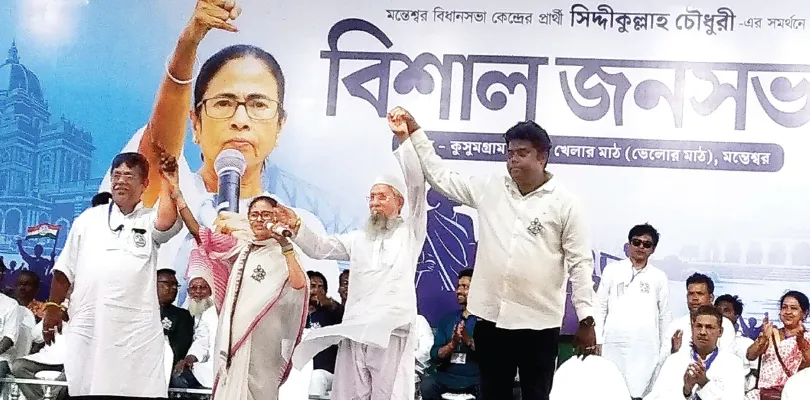 মন্তেশ্বর কেন্দ্রের তৃণমূল প্রার্থী তথা রাজ্যের বিদায়ী মন্ত্রী সিদ্দিকুল্লা চৌধুরীর সমর্থনে এদিন মন্তেশ্বর কুসুমগ্রাম ফুটবল মাঠে ( ভেলোর মাঠ) সভা করেন মমতা বন্দ্যোপাধ্যায়। বেলা ১১টা থেকে কাতারে কাতারে মানুষ সভাস্থলে হাজির হন। মূল মঞ্চের সামনের বসার অধিকাংশ জায়গা মহিলাদের দখলে চলে গিয়েছিল। কয়েক হাজার লোক সভার সামনের অংশে থাকলেও হেলিপ্যাডে তার চেয়েও দ্বিগুণ মানুষের উপস্থিতি ছিল বলে তৃণমূল নেতৃত্বের তরফে জানানো হয়। এদিন বেলা সওয়া তিনটে নাগাদ মমতা বন্দ্যোপাধ্যায় মঞ্চে উঠেই প্রচণ্ড গরমে উপস্থিত সবাইকে দীর্ঘক্ষণ অপেক্ষার জন্য ধন্যবাদ জানান। বিশেষ করে সভাস্থলে উপস্থিত মহিলাদের প্রতি কৃতজ্ঞতা জানান নেত্রী। সভায় আসা মন্তেশ্বরের বাসিন্দা বছর পয়ত্রিশের পারভিন রেজা খাতুন বলেন, স্বামী ক্ষেত মজুরের কাজ করে। মেয়ে দশম ও ছেলে পঞ্চম শ্রেণিতে পড়ে। অভাবের সংসারে ছেলে, মেয়েদের পড়াশোনা চালাতে কষ্টই হচ্ছিল। লক্ষ্মীর ভাণ্ডার পেয়ে ছেলে, মেয়েদের টিউশনের টাকা দিতে পারছি। মেয়ে স্কুল থেকে সাইকেল পেয়েছে। শাশুড়িও বার্ধক্য ভাতা পাচ্ছেন। মমতাদির জন্যই আজ আমাদের সংসারে কিছুটা হলেও স্বাচ্ছন্দ ফিরেছে। তাই ওঁকে দেখতে সভার মাঠে এসেছিলাম। আমার সঙ্গে গ্রামের আরও বেশ কয়েকজন মহিলাও এসেছেন। লক্ষ্মীর ভাণ্ডার সত্যিই গ্রামের মেয়েদের মুখে হাসি ফুটিয়েছে। কুসুমগ্রামের বাসিন্দা বছর পঞ্চান্নর ফুলমণি সোরেন। এদিন সপ্তম শ্রেণিতে পড়া নাতনির সঙ্গে সভায় আসেন। ফুলমণি বলেন, স্বামী বার্ধক্য ভাতা ও আমি লক্ষ্মীর ভাণ্ডার পাই। স্বামী শারীরিক ভাবে অসুস্থ থাকায় ঠিক মতো কাজ করতে পারেন না। আমিও রোজ কাজে যেতে পারি না। আমার সামান্য রোজগার ও দু’জনের ভাতার টাকায় কোনও রকমে সংসারটা চলে। তাই তৃণমূল ছাড়া অন্যদল ক্ষমতায় আসুক চাই না। মমতাকে দেখতে এই সভায় এসেছি। মন্তেশ্বর বিধানসভার জেলা পরিষদের সদস্য তথা তৃণমূল নেতা আজিজুল হক বলেন, হাজার, হাজার মানুষের উপস্থিতি বলছে এবার গতবারের চেয়েও বেশি ভোটে জিতবে তৃণমূল। আমরা যতটা আশা করেছিলাম তার চেয়ে বেশি লোক এসেছে।